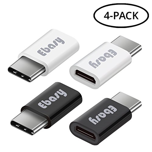 USB Type C Adapter, Ebasy USB C to Micro USB Adapter / Micro to Type C USB Converter for Macbook Pro, Galaxy S8 S8+, Google Pixel, Nexus 6P 5X, LG G5, HTC 10, HUAWEI P9 and More(4-Pack, Black&White)