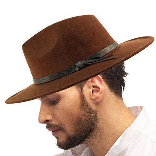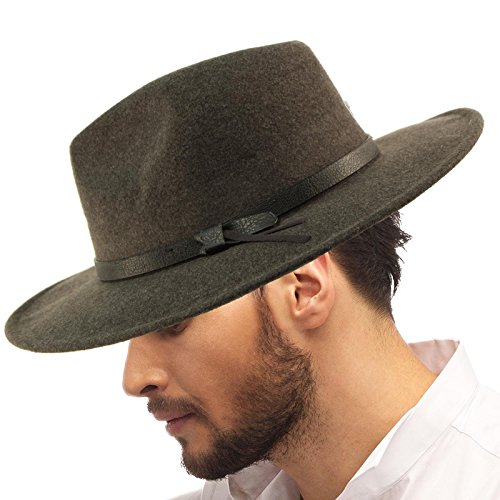 Everyday Warm Thick Godfather Homburg Panama Structured Body Upturn Curled Brim Hatband Retro Derby Fedora Trilby Cap Hat Unisex Fall Winter Premium Structured classic body curled upturn wide brim resort wear sun hat with interior sweat band, no lining for cool comfort. Faux leather hatband. Redesigned for cool fit. Keep the harmful UV rays out of your face. Perfect for hot and warm weather outdoor activities, will keep you cool. Will compliment any outfit. How about for vacation or for resort wear. A homburg is a formal hat characterized by a single dent running down the center of the crown called a gutter crown, a stiff brim shaped in a kettle curl and a bound edge trim. 0 |