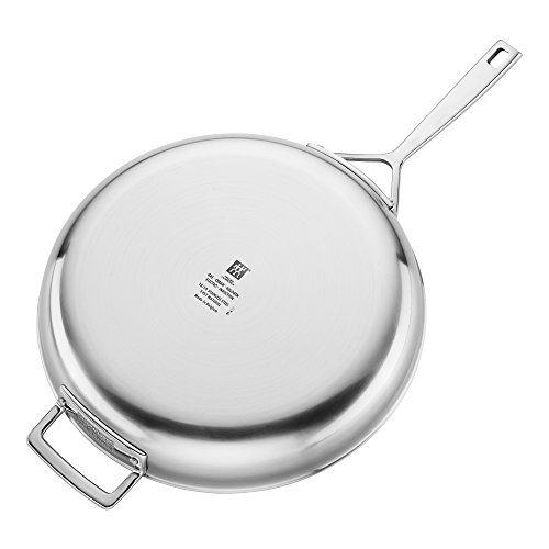 With a satin-finished stainless steel body and mirror-finished handles, this stylish, Belgian-made cookware adds aesthetic appeal to your kitchen. Featuring a beautiful logo nameplate, the ergonomic, stay cool handles ensure easy maneuvering and are securely riveted. The 5-Ply fully clad construction boasts perfect browning, outstanding frying, and stellar searing. Even cooking is guaranteed with the superior heat conduction and flat base stability, which prevents the pans from bulging. Enjoy uncomplicated cooking thanks to the dripless pouring rims and tight fitting, energy efficient lids.Feature