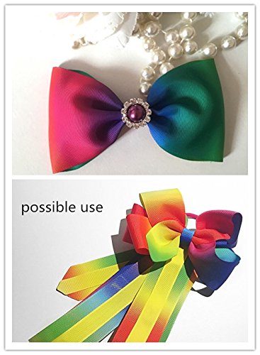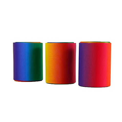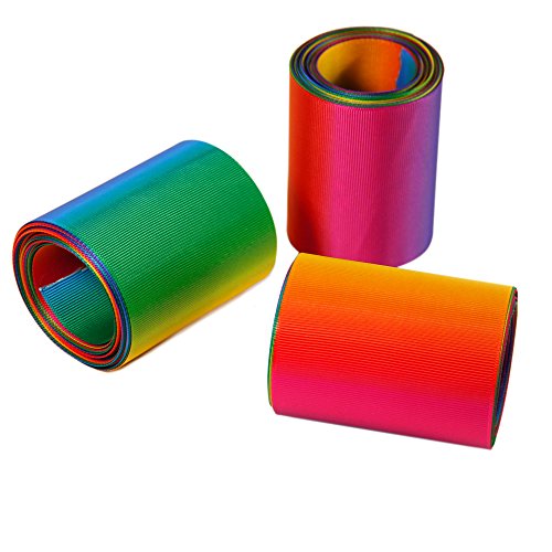3" Wide 5 Yard DIY Fashion Rainbow Color Printed Linen Ribbon For DIY Handmade Hair Bow Clip Accessories And Festival Wedding Party Birthday Bridal Shower Decoration (Double Side Rainbow)