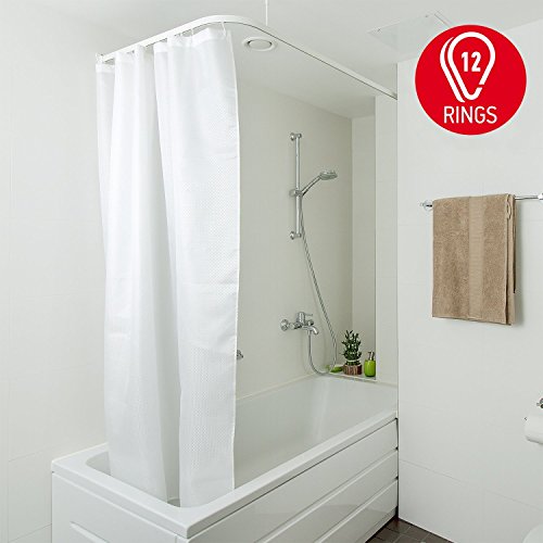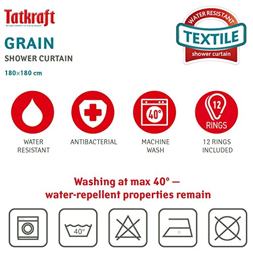 Tatkraft Grain Textile Shower Curtain Liner 180X180 cm + 12 Matching Metal Rings