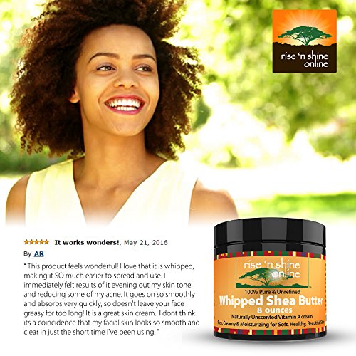 -. Feature : DON'T BE PERSUADED INTO BUYING LOW QUALITY SHEA BUTTER! Our Unrefined Whipped Shea Butter is imported from Ghana, has an all-natural Ivory color, is 100% organic and has been whipped up with lavender oil creating a pleasant mixture for those who do not enjoy the raw shea smell. Also check out our other scented variations by clicking our store name next to the product title! / READY TO USE RIGHT OUT OF THE JAR! No adding ingredients, watching complicated videos or scouring the internet trying to find a workable solution to use your butter. Our Unrefined Whipped Shea Butter is provided pre whipped, ready to apply, every time. Use like a lotion or in addition to your favorite hand cream, body butter recipe or soap base. / 100% ORGANIC SKIN SOLUTIONS! Exceptional healing and moisturizing properties for skin. Improves small blemishes, stretch marks, scars, wrinkles, eczema & dermatitis. Properties can help treat skin allergies, insect bites, sunburns, frostbites & more. Use in the winter time for protection in cold weather conditions! / NATURAL VITAMIN A, K, E & F CREAM! Vitamins A and E help maintain the skin and keep it clear and healthy. They are particularly helpful for sun damaged skin. They help prevent premature wrinkles and facial lines. Vitamin F acts as a skin protector and rejuvenator. / BONUS EBOOK - Included with every purchase, you will receive an Ebook that teaches you about the uses and benefits of your new product! Every Rise 'N Shine Online product comes with a 30-Day Money Back Guarantee. So click the Add to Cart button now and order your own Lavender Whipped African Shea Butter today!