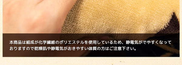 注意点:組成が化学繊維のポリエステルを多く占めているため静電気が発生しやすい仕様となっております。
