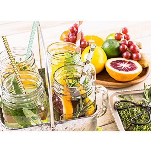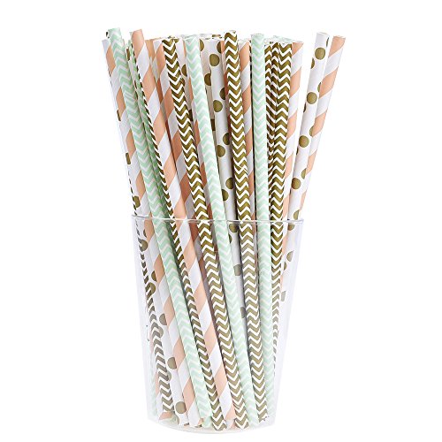 -. Feature : Flower paper straws size: 19.7 cm/ 7.76 inches in length, 0.6 cm in diameter, proper length, not too long or too short, can fit for your party or other occasions needs / Bright colors: there are 4 colors in party paper straw, gold wave, green wave, gold dot and orange strip, 4 different colors can meet your different needs / FDA approved paper material: these mixed paper straws are made with natural materials, safe and non-toxic; Having your children use them without any concern for their health / Application: colorful paper drinking straws are suitable for birthdays, weddings, baby showers and parties; It can create warm and cheerful atmosphere for your party / Package includes: 100 pieces of beautiful paper straws in 1 pack, each color comes in 25 pieces, are enough for your party celebrations or baby shower