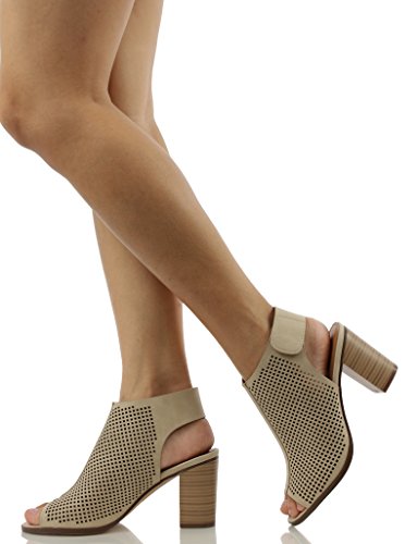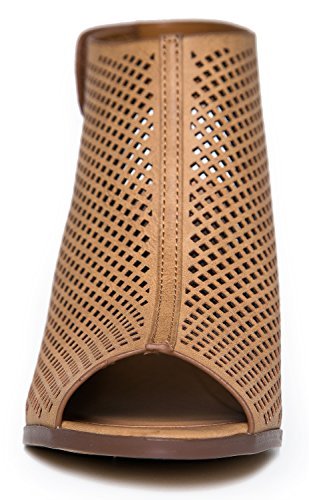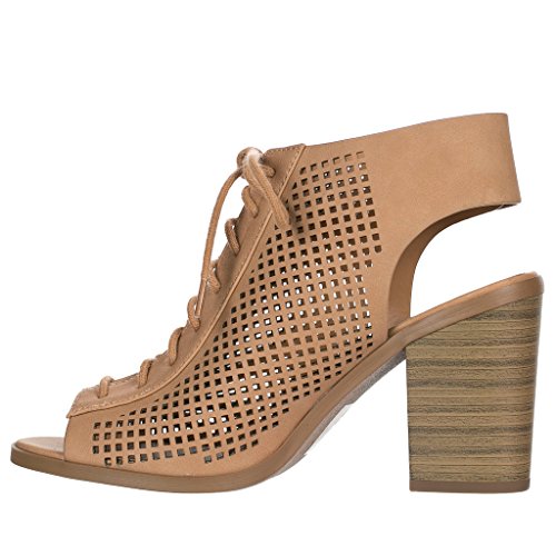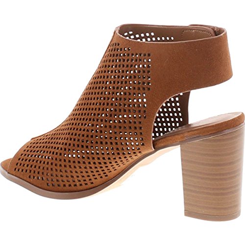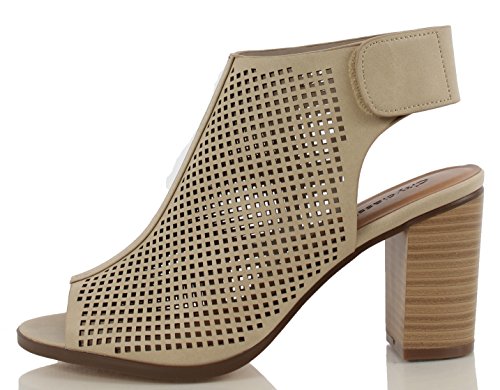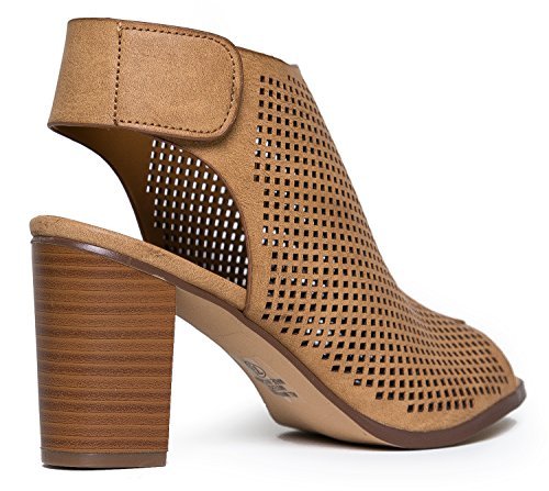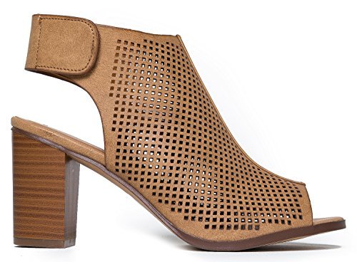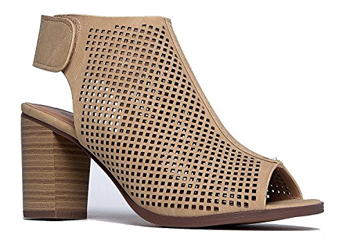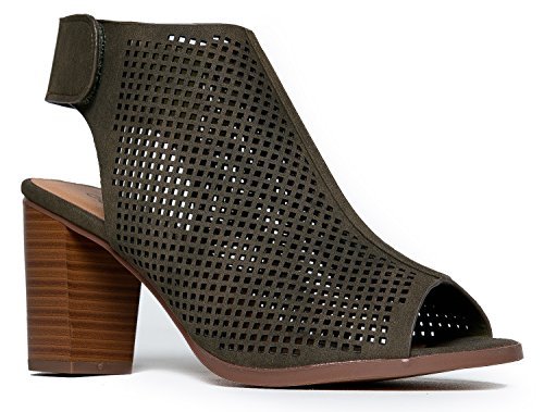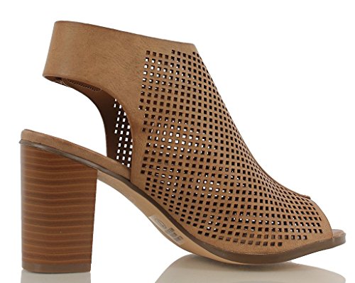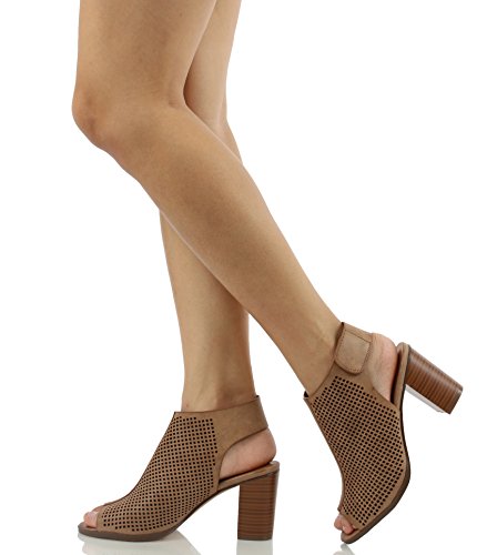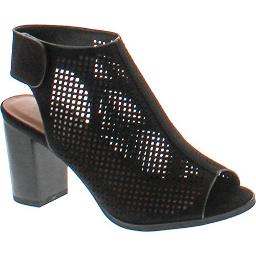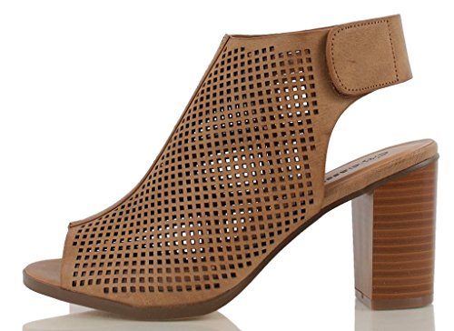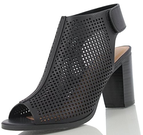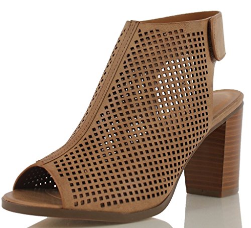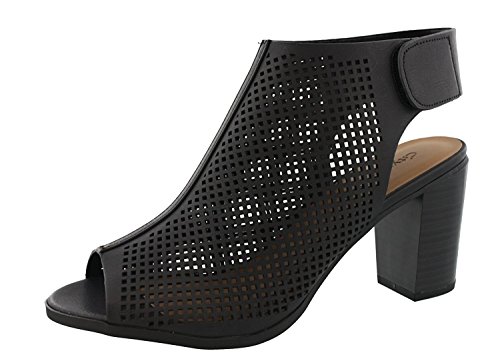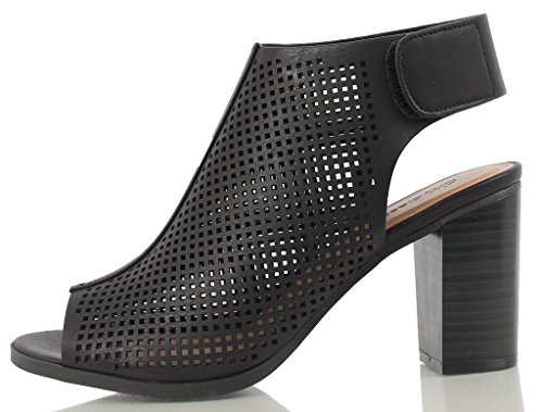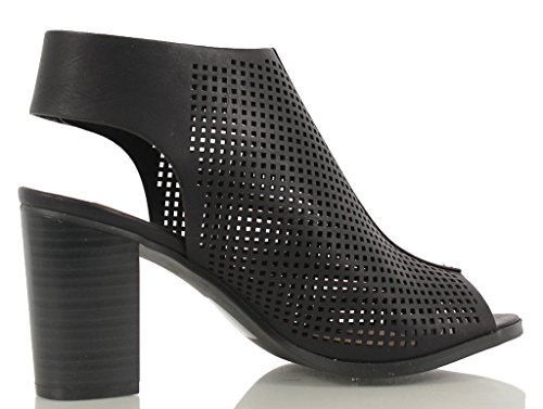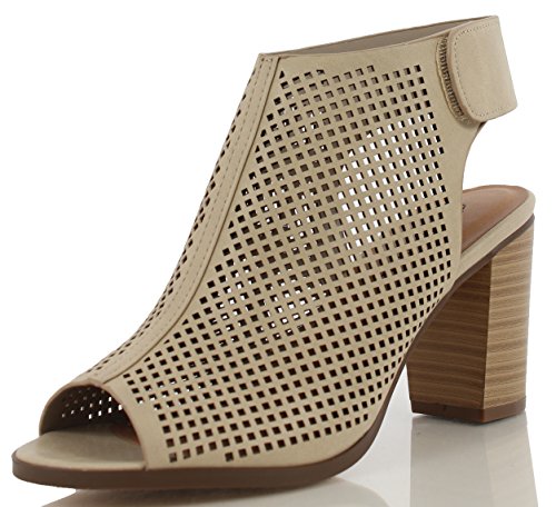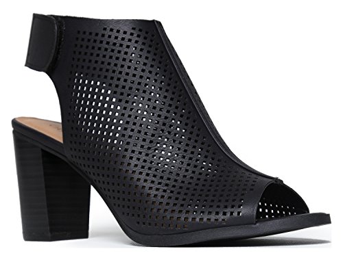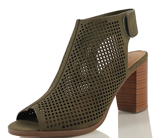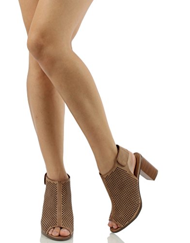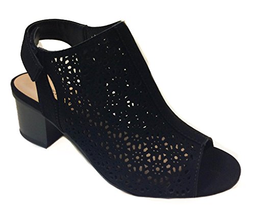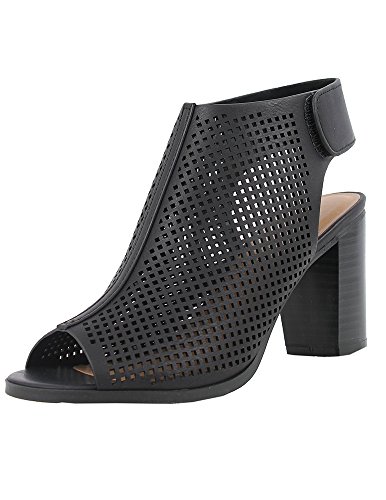 | City Classified Women's Roadway Faux Leather Peep Toe Laser Cut Out Slingback Stacked Heels |