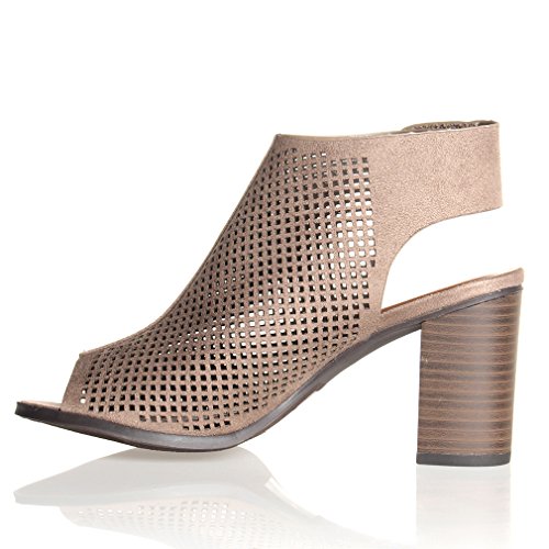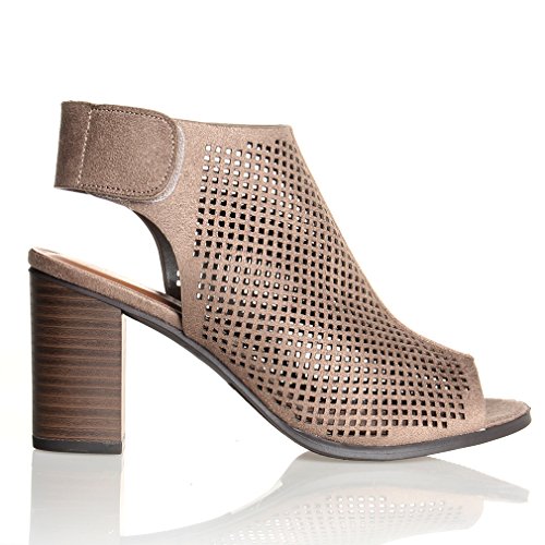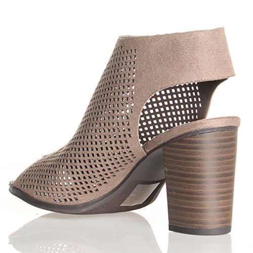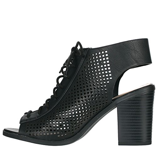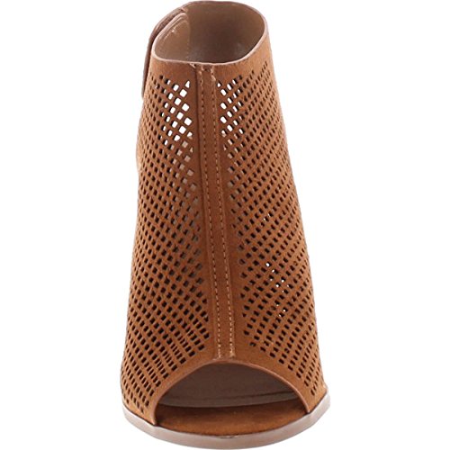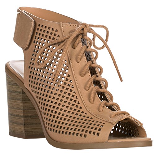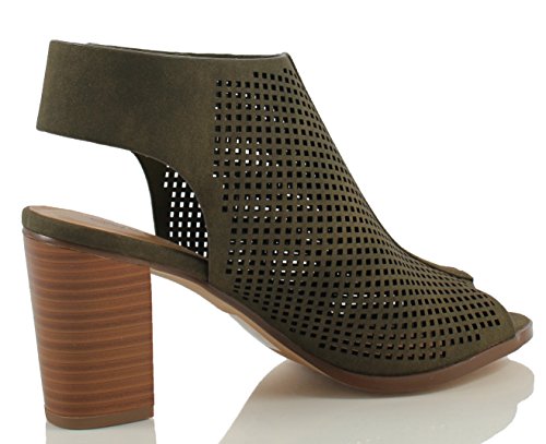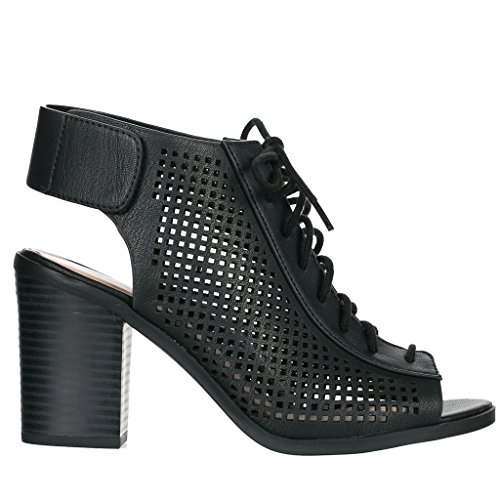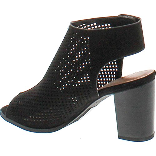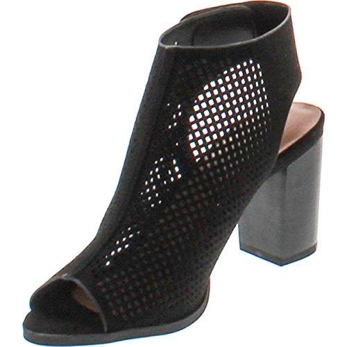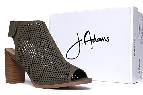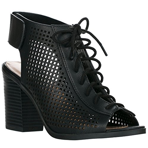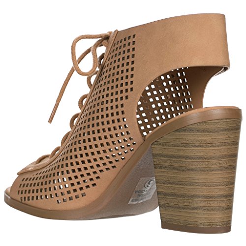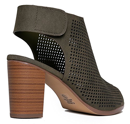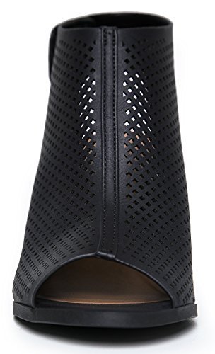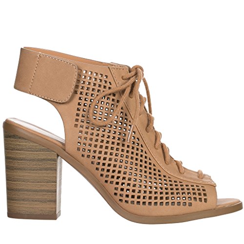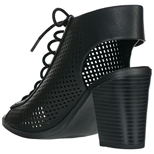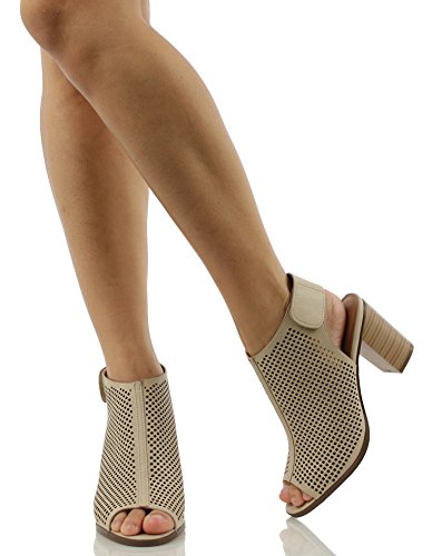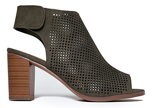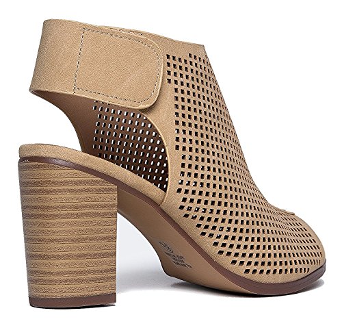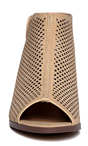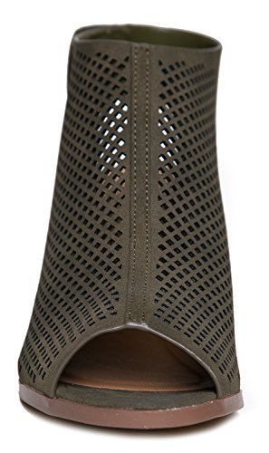 | City Classified Women's Roadway Faux Leather Peep Toe Laser Cut Out Slingback Stacked Heels |