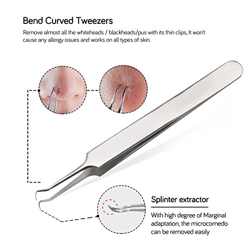 ★Bend-Curved Tweezers: the unique bend curved tweezers can easily remove blackheads/whiteheads or pus due to its special thin clips. It protects from any sensitivity issues and works perfectly on all skin types.