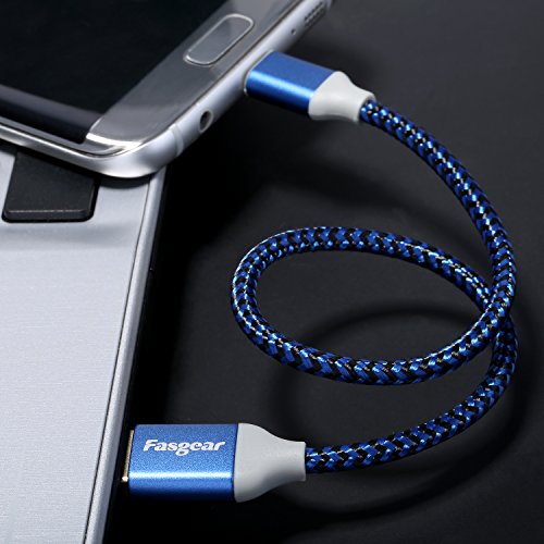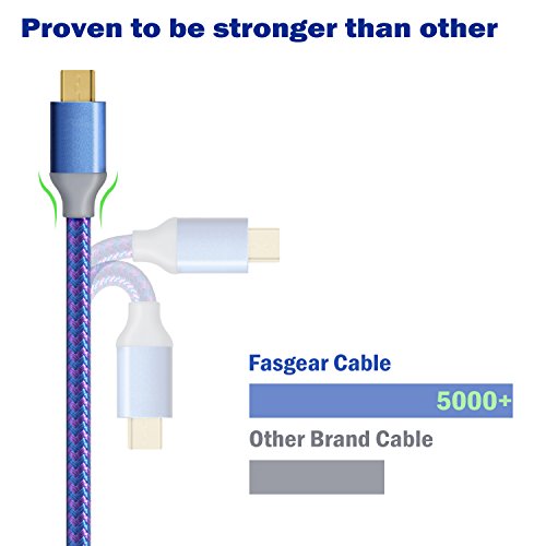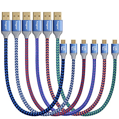 Micro USB Short Cords, Fasgear 6 pcs 1ft / 30cm Nylon Braided Micro USB Cable With Gold-Plated Navy-Blue Connector For Samsung, LG, HTC, Nokia, Android Phone And More (6pcs Colorful Cables)