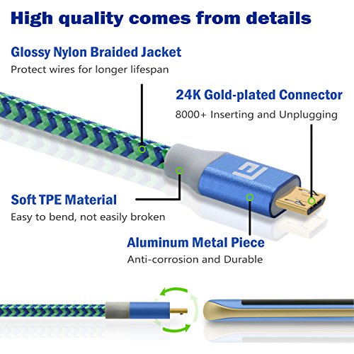 EXTRA DURABLE: Durable Nylon Braided cable jacket protects wire cores and resists kinks, with a 5000+ bend lifespan several times longer than original device cables.