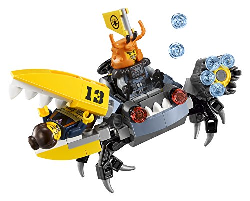 -. Feature : Lightning jet features a handle for easy play, opening cockpit, sP.R.Ing-loaded shooter, trigger-activated rotating electro-disc, adjustable wings and lots of antennae / Includes 6 : Jay, Ed, Edna, crusty, jelly and shark Army thug / Weapons include Jay's spiked flail, crust's fish chainsaw, jelly's stud-shooter and fish with extra studs, and shark Army thug's fish hammer / Lightning jet measures over 7in (20cm) high, 17in (44cm) long and 11in (30cm) wide / Crab measures over 2in (6cm) high, 3in (9cm) long and 4in (12cm) wide