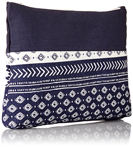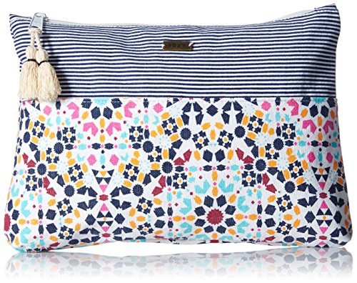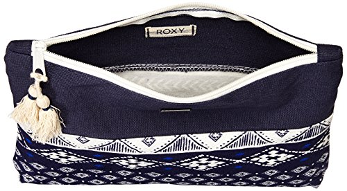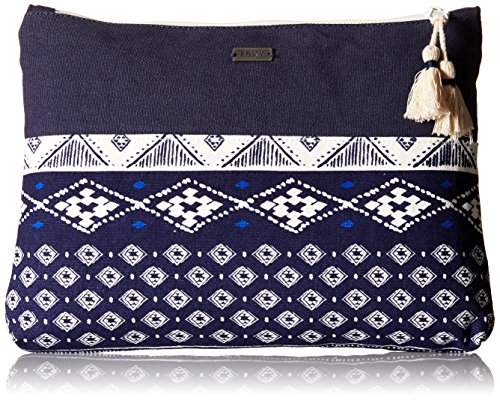 Large cotton canvas clutch, zip top closure with tassel, and Roxy metal plate.