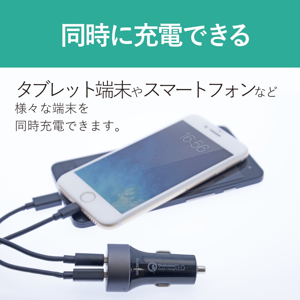 (Quick Charge (TM) 3.0 is compatible with one side USB port only) ■ Two ports of USB port are installed, and simultaneous charging of two smartphones is possible.