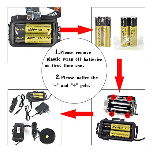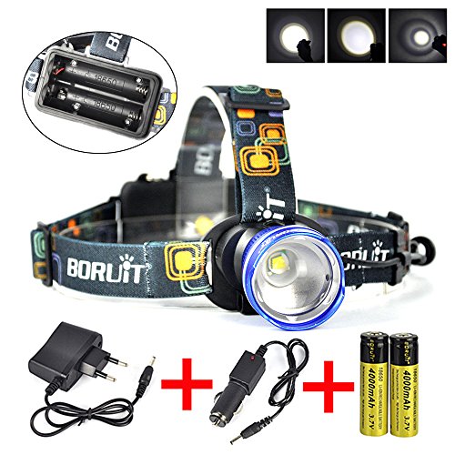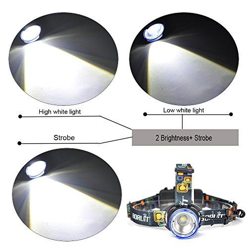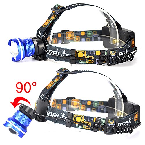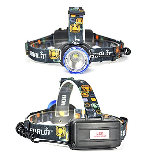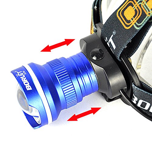 Boruit LED Rechargeable Headlamp -Zoomable Spot Light, Flood Light & 3 Mode for Camping, Running,Reading,Bicycle,Hunting,Fishing with 2*18650 Rechargeable Batteries+Wall Charger+Car Charger