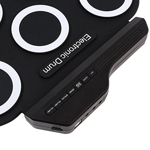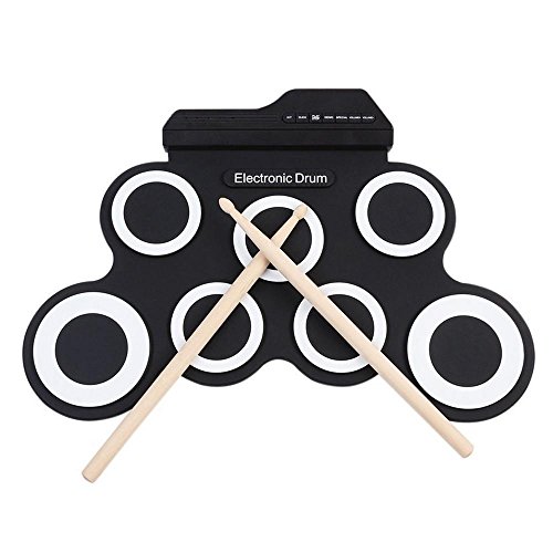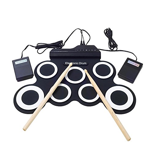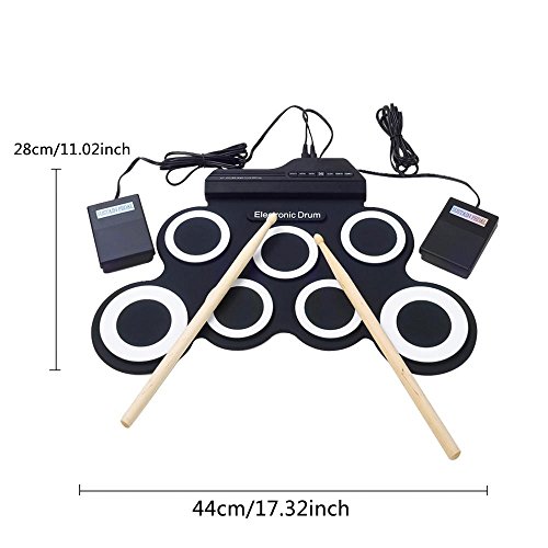 Feature: The fun and portable roll-up electric drum with 7 drum pads, 2 foot pedals, 5 timbres, 8 demo songs, 3 rhythms. Suitable for home entertainment and common music practice,built-in metronome basic functions,training a good sense of rhythms. you could use headphone that you won't disturb other people while playing,can keep it rolled up when you don't use it.