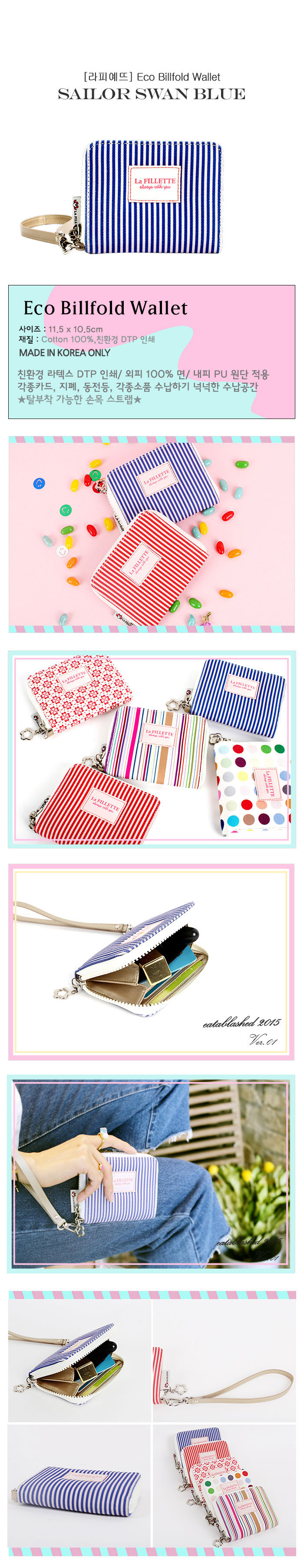 친환경 라텍스 DDP 인쇄/외피 100% 면/내피 PU 원단 적용/카드, 지폐, 동전, 각종소품 수납하기 넉넉한 수납공간/탈부착 가능한 손목 스트랩