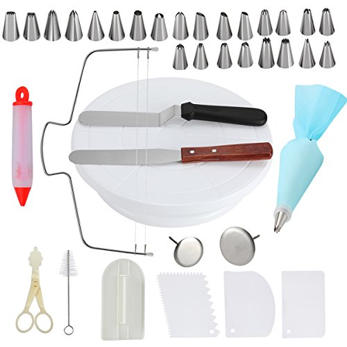 Features: All tips are made from the highest quality, 100% food grade stainless steel on-toxic,totally suit for food-grade use Silicone pastry bags FDA and LFGB approved. Full pack cake decorating kit with supplies Made with durable and premium materials so they last for as long as possible The tips, coupler and case are all tasteless and non-toxic Perfect tools to decorate all your cakes, cupcakes, cookies, pastry and more. Plastic finger grips make it easy to adjust the wire to the clearly defined height markers - to create a perfectly even cut Flat, hard plastic feet provide stability and help the leveler smoothly slide across the counter during use