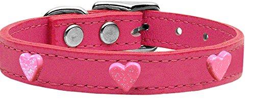 Mirage Pet Products 83-65 Pk14 Pink Glitter Heart Widget Genuine Leather Dog Collar Pink, Size 14