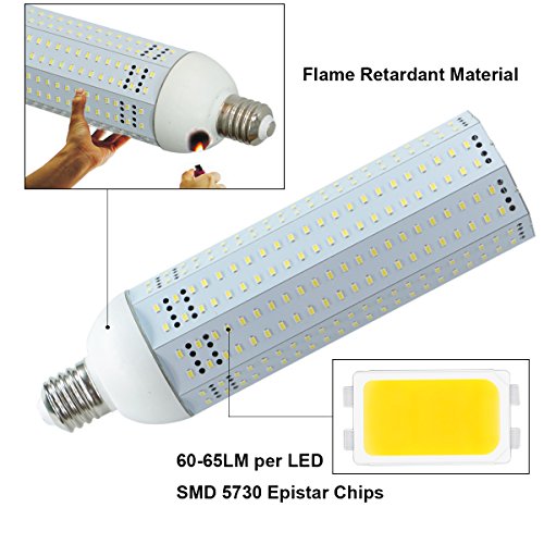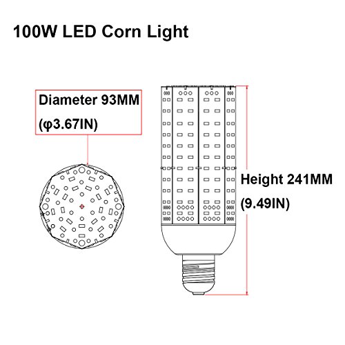 - BASIC PARAMETERS: E39/E40 Base LED Corn Light Bulb, 100Watt, 5000K Daylight, 240PCS SMD5730 LED Chips, 13000LM, AC85-305V Input, 360degree Emitting.