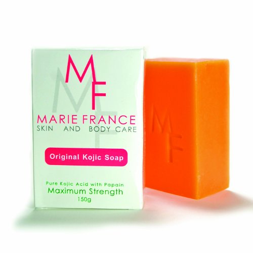 -. Feature : This is a professional-strength kojic soap that combines pure kojic acid as the skin whitening agent and papain as the skin exfoliator, which promises a fairer, even-toned and brighter-looking skin if used daily. We added papain to the ingredients so that it will remove your dead skin cells to reveal the healthier cells underneath the skin. The difference between this kojic soap and the other kojic soaps in the market is the formulation. Not all kojic soaps are the same. Most kojic soaps have very little kojic acid in it and this is why you're not seeing any skin whitening effect. Marie France uses high concentration of kojic acid and papain, both are known for its skin whitening and rejuvenating effect to effectively whiten your skin and makes it look even, fairer, smoother and younger with daily use. The skin whitening process is gradual, it doesn't happen overnight. It normally takes 8-12 weeks before you see the maximum results - this really depends on your skin sensitivity. This kojic soap can be used on both face and body. It can remove dark areas or skin blemishes such as: acne or pimple scars, melasma, whiteheads, blackheads, hyper pigmentation, dark elbows, knees, inner thighs, bikini area, butt, knuckles, underarms, old scars, etc. / WHAT TO EXPECT: · Your skin will micro exfoliate (peel). This will be barely noticeable especially if you use a moisturizer. · Your skin is going to look like it's dry. You will go through the "cleansing stage," where the soap will remove all your dry, flaky and dull skin cells. Please note that this dryness is due to the papain enzyme buffing away your dead skin cells to reveal a smoother and even skin tone. It also helps reveal the healthier cells underneath. Exfoliation plays a key role in skin whitening. Your dead skin cells have to be removed so that the kojic acid can penetrate your skin faster. What to do so that your skin is not going to look and feel dry: use a heavy moisturizer. · Your skin will feel tight and itchy - this is the start of the exfoliating process. What to do: add more moisturizer to your skin - preferably a heavy moisturizer. · Your skin may look red - If your skin turns red, this is either because you leave the soap longer that the recommended time frame or you have a sensitive skin. We do not recommend this soap on individuals with sensitive skin. If you have a combination skin type and experience redness while using the kojic soap, then please use the soap three times a week for no more than 15 seconds until you build tolerance to kojic acid and papain. · Burning/tingling sensation - this is normal for the first week of use, however, you need to temporarily use this soap every 3 days until your skin gets used to the kojic acid and papain extract. Also, do not leave the soap on for more than 15 seconds. If burning sensation persists, discontinue use permanently. · Breakout - breaking out the first couple of days while using the product is normal. This is because the kojic soap is removing all the impurities and dirt embedded in your pores. Breaking out or getting pimples is more than likely going to happen especially if you have blackheads, whiteheads or if you're acne-prone. / WARNING: You MUST use a heavy moisturizer after using this kojic soap. This soap is highly concentrated and you may experience skin peeling depending on your skin type (your skin will look like it's dry and might feel tight, but really, it's peeling to remove the dead and old skin cells - this is the first step to skin whitening) and this is why a heavy moisturizer is a MUST. If you have no plans on using a moisturizer after using this soap, then please do not purchase this product.CAUTION: Not for sensitive skin. NEVER stay under the sun while using this product and use sunscreen when outdoors. / IMPORTANT NOTE: Please be realistic with your expectation. This kojic soap can help your skin if you use it the right way and if you use it continuously. If you are trying to remove acne marks, dark spots or trying to lighten your skin tone, it will take time before you see it happen. The average time frame before seeing any skin lightening results is between 6-12 weeks of daily use. This kojic soap is not a magic soap. It will NOT lighten your skin tone in a few days. It will take time, so please be patient. / DIRECTIONS: PLEASE READ ENTIRELY BEFORE USING THIS KOJIC SOAP First Step: ****Always remove makeup first using a gentle facial cleanser P.R.Ior to using this kojic soap. **** Wet skin with warm water and gently massage soap on the skin for no more than 15 seconds on your first week of use. DO NOT RUB. Avoid getting into eyes, nose or mouth. Use this soap only once a day (preferably at night) for the first week. Wash thoroughly with cold water. NOTE: After the first week, you can use the soap twice a day for no more than 30 seconds. Second Step: Apply the Tone Perfecting Crème (for face) or Tone Perfecting Lotion (body) or any heavy moisturizer after washing your face with the kojic soap. NOTE: It is required to use a moisturizer after using the soap. If you do not use a moisturizer after using the kojic soap, your skin may look and feel dry, feel itchy and tight - all because of its exfoliating (peeling) effect. Do not stay under the sun while using this product. Storage: Put inside a plastic bag and keep away from the sun and the shower. Store in a cool, dry place. Caution: Not for sensitive skin. Avoid sun exposure while using this product and use sunscreen when outdoors. Ingredients: Glycerin, Kojic Acid Extract, Papaya Extract (Papain), Vitamin E, Aloe Vera (recently added),