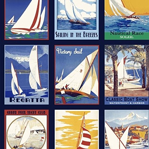 1 Yard Pre-Cut - "Dreaming of Sailing" Sailboats Nautical Posters on Navy Blue Fabric 100% Cotton (Great for Quilting, Sewing, Craft Projects, Throw Pillows, Curtains, Valances & More) PreCut 1 Yard X 44"