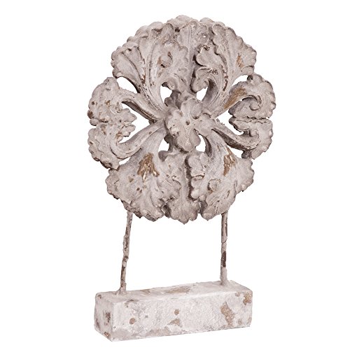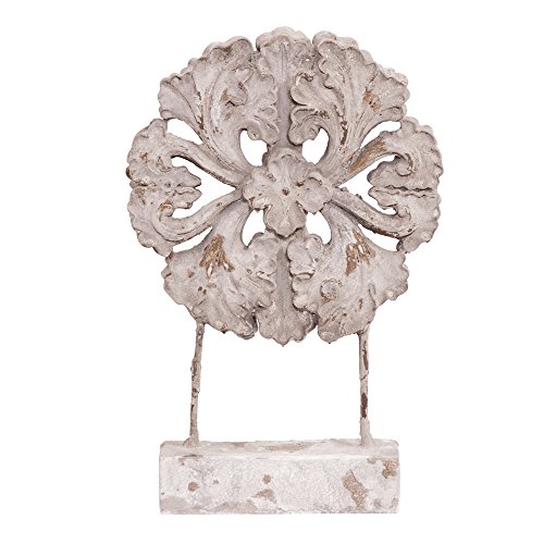 - This interesting sculpture features a round Floral medallion set on metal rods and faux stone base