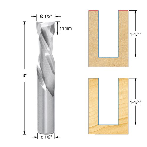 Amana Tool 46188 CNC Compression Spiral for MDF and Laminate 2-Flute Solid Carbide Router Bit, 1/2-Inch Shank