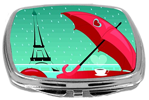 Rikki Knight Paris Eiffel Tower with Red Umbrella on Cafe Table Design Compact Mirror, 17 Ounce