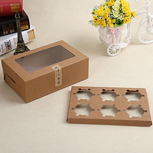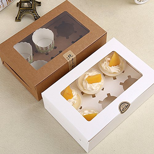 Chilly Cupcake Boxes, Pastry and Cookie Box, Cupcake Containers Carriers Bakery Cake Box with Stickers and Window, 5 Kraft, 5 White, Set of 10 (6 Holders)
