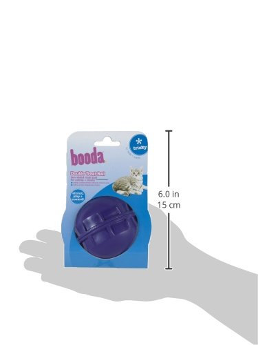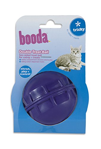 -. Feature : This Fabulous Cat Toy Packs In 2 Of A Cat'S Favorite Things: Catnip & Treats! The Booda Double Treat Ball Is A 2-Sided Treat Ball For Twice The Fun / Easy To Fill, This Unique Toy Has A Catnip Compartment That Attracts Cats To Play While The Toy'S Rolling Action Dispenses Treats, To Entertain & Stimulate A Cat'S Natural Curiosity / Made of extra firm, lightweight rubber, the Double Treat Ball is easy to bat & chase & it's easy to use / To Fill, Simply Unscrew The 2 Halves, Remove The Red Cover On The Catnip Reservoir, Fill The Compartment, & Reseal / Then, Fill The Space Around The Catnip Holder With Cat Treats Or Kibble & Screw The 2 Halves Back Together