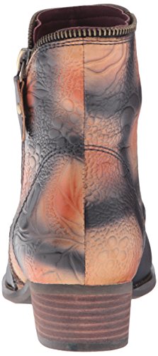 Product DescriptionHand painted color-blocked and embossed leather pull-on bootie with an asymmetrical zipper and zipper welt detail.0