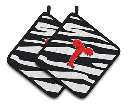 Caroline's Treasures Monogram Initial T Zebra Red Pair of Pot Holders CJ1024-TPTHD, 7.5HX7.5W, Multicolor