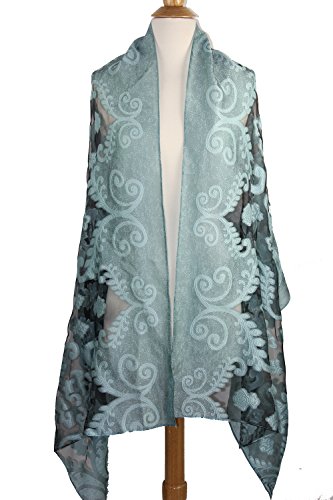 -. Title : Achillea Sheer Burnout Scarf Shawl Beach Cover-up w/ Embroidered Floral Pattern