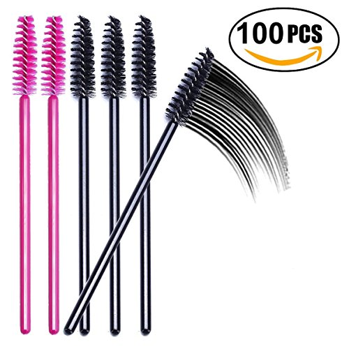 GTVIA 100 Pack Disposable Eyelash Mascara Brushes Wands Applicator Makeup Brush Kits(Black & Pink)