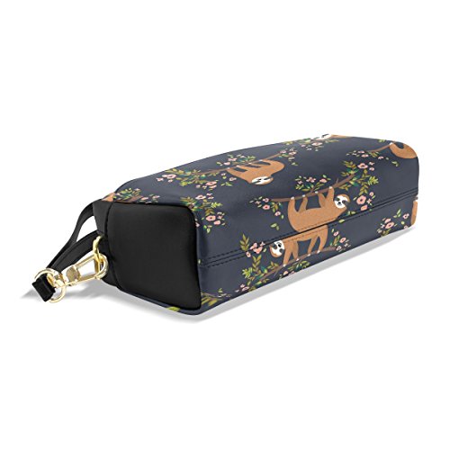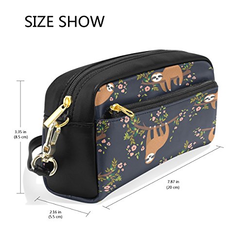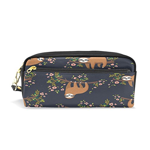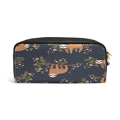 ALAZA Cute Sloth on Tree Vintage PU Leather Pen Pencil Case Pouch Case Makeup Cosmetic Travel School Bag