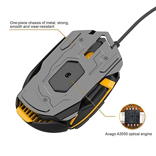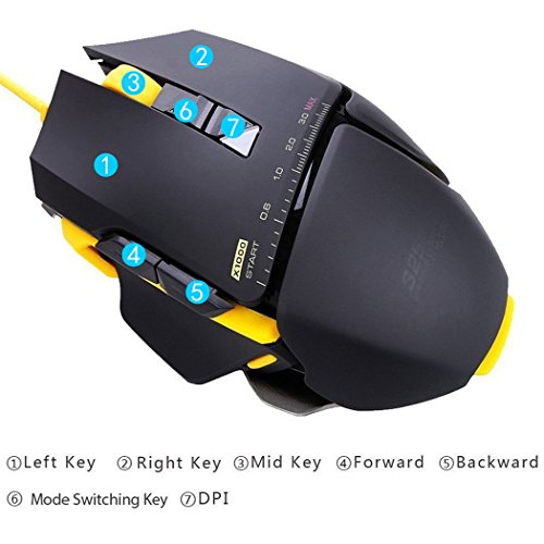 Hcman Gaming Mouse Programmable Mice USB Wired Laser 3000 DPI 7 Buttons with 5 Adjustable levels Omron Switches for PC Mac (Black)