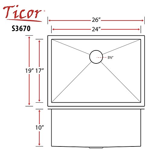 26" Ticor S3670 Pacific Series 16-Gauge Undermount Stainless Steel Single Bowl Zero Radius Square Kitchen Sink with Accessories