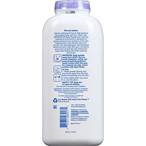 ReleaseDate : 2017-07-13 Studio : Johnson Johnson Services, Inc. Publisher : Johnson Johnson Services, Inc. Binding : Misc. Product Description Johnson Johnson 003017 baby Pure Cornstarch, calming lavender Chamomile, 15 oz., Pack of 24. Baby care. Calming lavender chamomile. 15 oz. capacity. . . Johnson Johnson 003017 Baby Pure Cornstarch, Calming Lavender Chamomile, 15 oz. (Pack of 24). 003017. Country of Origin : United States. 0