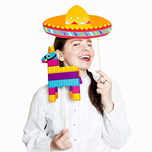Fiesta Photo Booth Props by PartyGraphix. Perfect for Mexican Photo Booth Props Stand. Fiesta party supplies. Kit includes 32 Pieces.