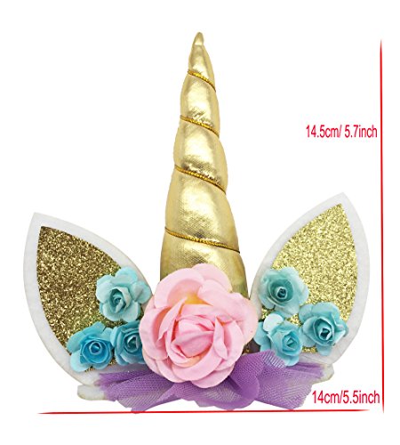 Unicorn Cake Topper, KOOTIPS Unicorn Happy Birthday Twinkle DIY Glitter First Birthday Cupcake Topper Cake Smash Candle Alternative Party Handmade (3D Unicorn Cake Topper Gold)