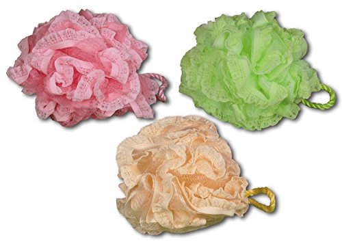 OneLeaf Bath Shower Sponge Mesh Pouf Brush Shower Ball Pack of 3