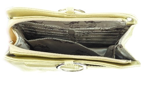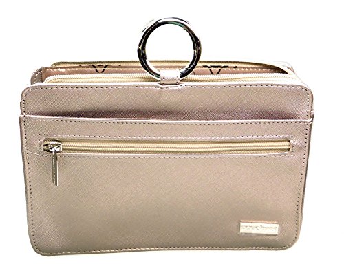 Product Description The Pouchee Plus is the larger version of the Pouchee Purse Organizer and comes with an optional shoulder strap. I love to set this up as a wallet with extra wow - credit card slots and a zippered cash pocket holds money and change - then there's room for other essentials like eyeglasses or sunglasses, cell-phone, keys, pens, tissues, lipsticks, a check book, and more. When you're out and about just strap on the shoulder strap and use this as a convenient shoulder or crossbody purse. The zipper across the top adds security! Dimensions: Width: 9.5 x Height: 6.25 x Depth: 3.5 Features: Credit card pockets on the inside of the purse organizer Optional strap to use as a small purse or evening bag Made of soft vinyl that is durable and supple Inside dividers to keep everything organized. No Wrapping - No Assembly - No Hassle Purse Organizer The Ultimate Purse Organizer! Inside Zippered pockets for change or personal items. A key clasp for your keys Handy Rings for ease of changing purses and bags. Outside pockets for pens, sunglasses, mobile phone,etc. Inside pockets for lipsticks or small flashlights, credit cards, keys Light-colored liner to easily see organizer contents Zippered across the top for extra security! 0