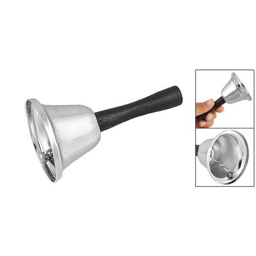 -. Title : SODIAL(R) Black Wooden Handle School Silver Tone Handbell