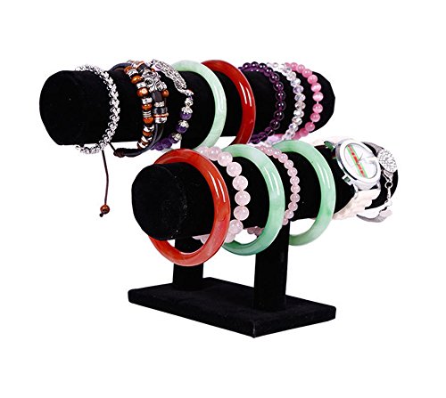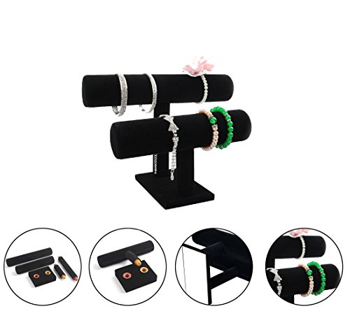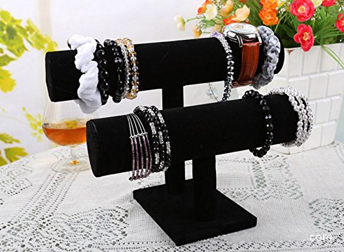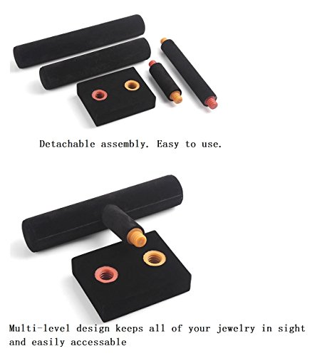 Wuligirl 2 Tier T-Bar Jewelry Towers Display Stand Necklace Bangle Bracelet Watch Organizer Black Velvet (2 Tier)