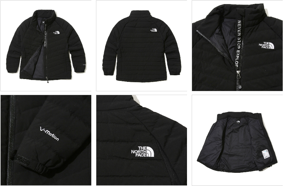 보온성과 쾌적함을 자랑하는 V-MOTION 패딩을 사용한 키즈 경량 패딩자켓입니다.