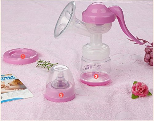 -. Title : Portable Manual Breast Pump and Bottle with Lid and Nipple - BPA Free Food Grade Plastic - Natural and Gentle Suction - By Lilac & Lavender