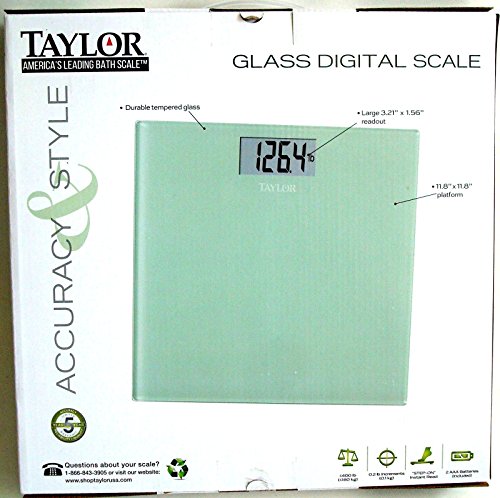 -. Binding : Health and Beauty -. Brand : Taylor -. Color : Ocean Green -. EAN : 0077784028414 -. Feature : TEMPERED GLASS, LARGE READOUT, 11.8" X 11.8" PLATFORM -. IsAdultProduct : 0 -. Label : TAYLOR -. Manufacturer : TAYLOR -. MPN : 7558OG -. PackageQuantity : 1 -. PartNumber : 7558OG -. ProductGroup : Health and Beauty -. ProductTypeName : HEALTH_PERSONAL_CARE -. Publisher : TAYLOR -. Size : 11.8" x 11.8" -. Studio : TAYLOR -. Title : Taylor Glass Digital Bath Scale Ocean Green #7558OG -. UPC : 077784028414