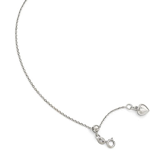 -. Title : Solid 14k White Gold Polished Dangle Heart Adjustable