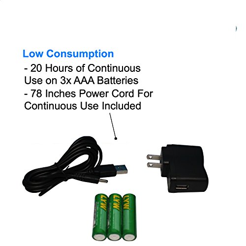 ✔ LOW CONSUMPTION - 20 Hours of Continuous Use on 3x AA Batteries