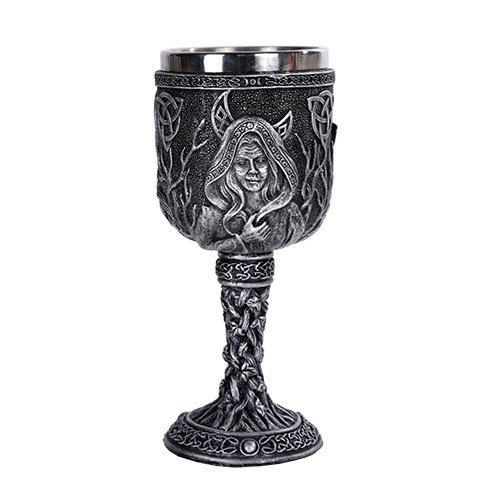 Triple Goddess Wine Goblet Made of Polyresin With Stainless Steel Rim