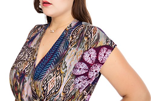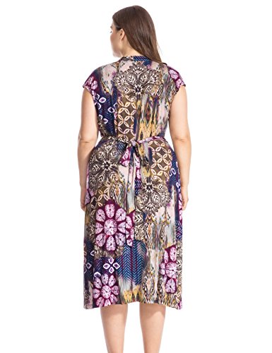 Cap Sleeves, Top with Big Hem Skirt, Multi Floral Printed Design, Semi-formal Plus Size Dress for Work or Party